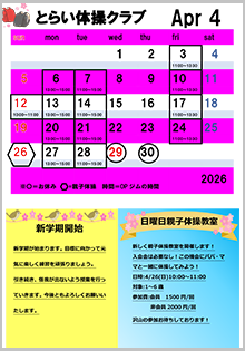 ■2026年4月「日曜親子体操教室」のご案内(2026/03/18) |